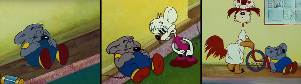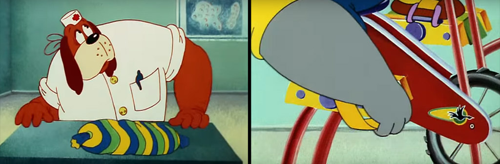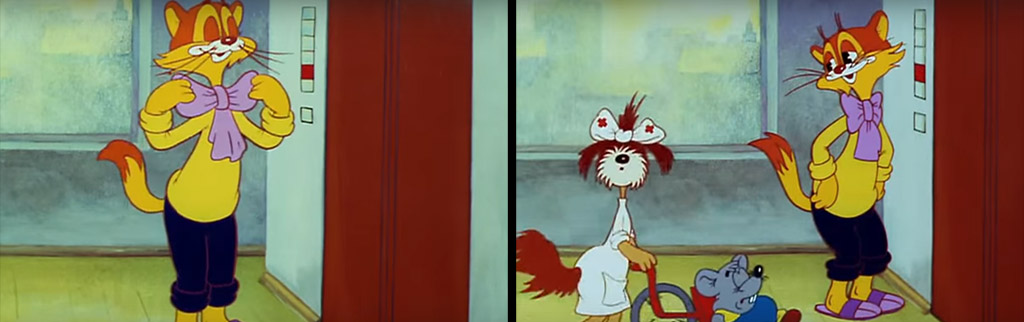 С одеждой тоже происходит нечто странное. Сами посудите: в эпизоде «Кот Леопольд во сне и наяву» рубашка у Мити сначала розовая, но потом резко приобрела насыщенный коричневый цвет. Пес-медбрат из «Поликлиники» пошел еще дальше: у него не только халат из белого в желтый перекрасился, но и сам он сменил окрас с рыжего на серый. Пес-хамелеон!