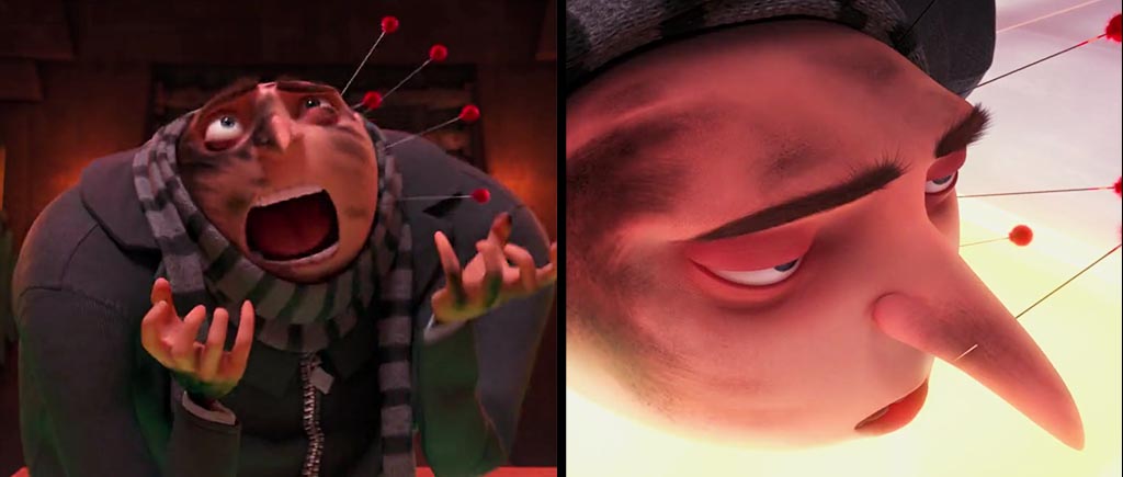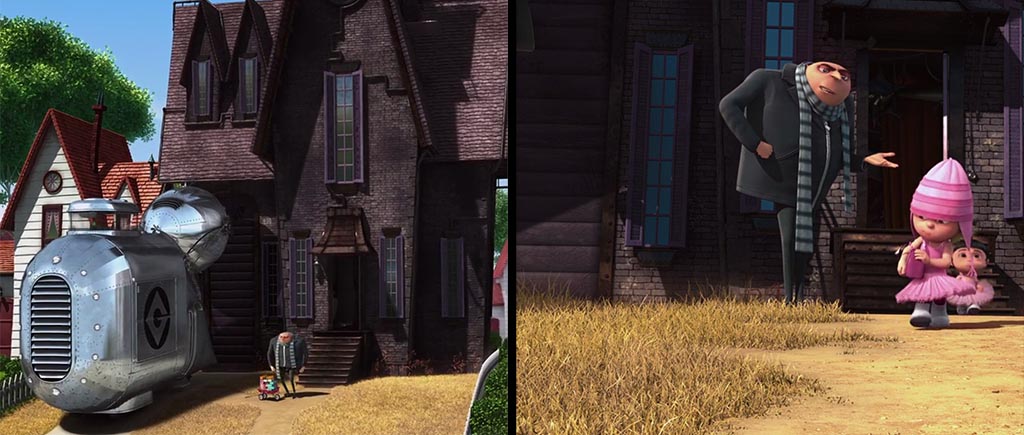 И финальное: когда в первой серии Грю общается со своим неопознанным домашним любимцем, за окном явный и бесповоротный день. Несколькими минутами спустя герой красуется на фоне полной луны. По сюжету времени прошло всего ничего, но этот момент настолько эффектный, что никто об этом не задумывается.