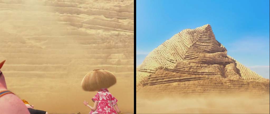 И пара слов о пропадающих живых. Туристы перед сдувающейся пирамидой исчезли в самом начале первого мультфильма, и даже в клубах дыма их не наблюдается, хотя должно.