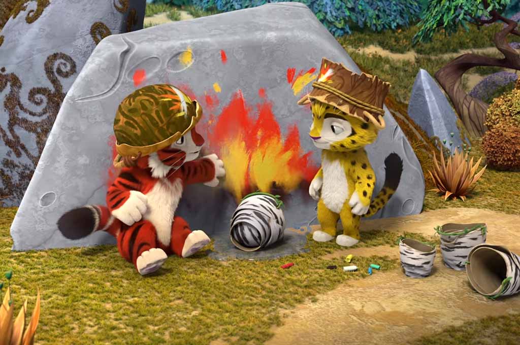 Лео и Тиг, наблюдая за слаженной работой лесных пожарных, и сами хотят попробовать освоить мастерство. Разжигать настоящий огонь опасно, друзьям помогает Леонелла — она рисует огонь на камнях. Пока ребята заняты тренировкой, героиня встречает оленёнка…