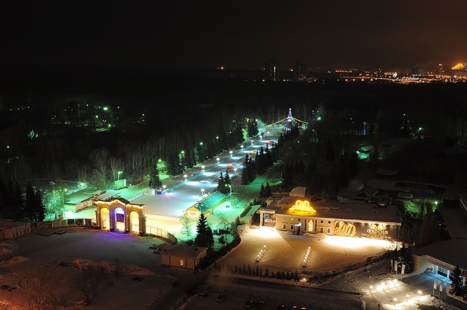 В Центральном парке им. Маяковского зимой заливают основную аллею, создавая прекрасную длинную площадку для народных катаний под названием «Узорный лед».