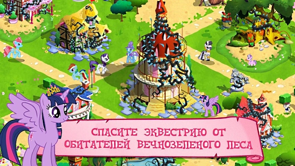 Основанная на популярнейшем мультсериале «Дружба это чудо» стратегия от Gameloft тоже уже достигла отметки в 10 млн скачиваний! На волшебный город Понивилль обрушилась беда — вернулась легендарная Лунная пони, которая принесла с собой хаос, и теперь веселым подружкам пони предстоит отстроить свой волшебный город заново! Разные здания стоят по-разному и приносят разные ресурсы. Мельница и лесопилка, пекарня и многие другие постройки требуют много внимания и постоянной вовлеченности в игровой процесс. Но так и устать не долго, поэтому разработчики разбавили процесс строительства разными веселыми аркадными играми, такими как игрой в мяч и другими.