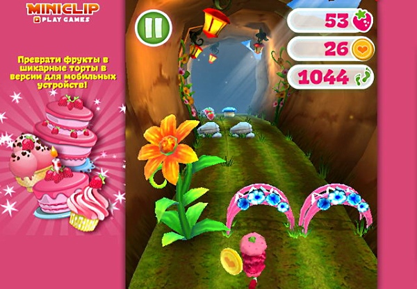 Студия MiniClip представляет яркий и очень красочный «раннер» по мотивам одноименного мультсериала, главной героиней которого является маленькая неунывающая девочка, которая очень любит готовить и приключения! Ставший уже классическим взгляд на персонажа сзади-сверху, стандартное управление вправо-влево-скользить-прыжок, простая задача — собирать полезняшки, монетки и бонусы… Однако же оформление, графика и персонажи делают эту игру очень привлекательной для определенной аудитории игроков. А еще девочкам понравится возможность не только готовить и украшать разнообразные вкусности при помощи собранного во время забега, но и продавать свои творения за золотые монетки!