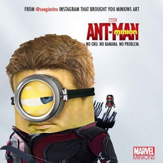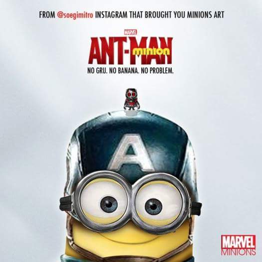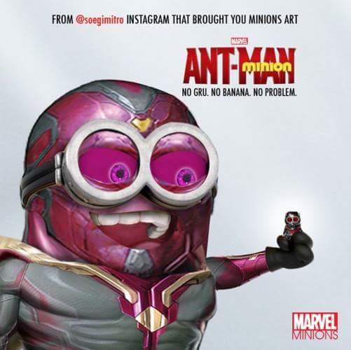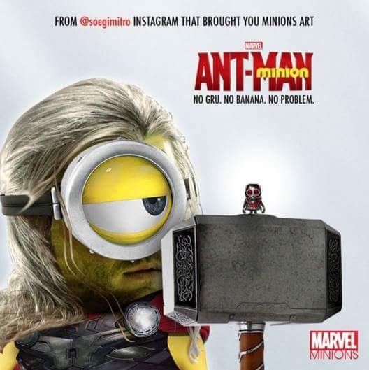 Еще буквально несколько фильмов, и всем привычная команда Мстителей будет выглядеть совсем иначе. Они превратятся в миньонов! Ладно, это шутка. Но один из художников решил пофантазировать, как выглядели бы миньоны в образе супергероев Marvel. Эти иллюстрации он рисовал к выходу «Человека-муравья», но уже в июле выходит вторая часть фильма, поэтому они вновь актуальны.