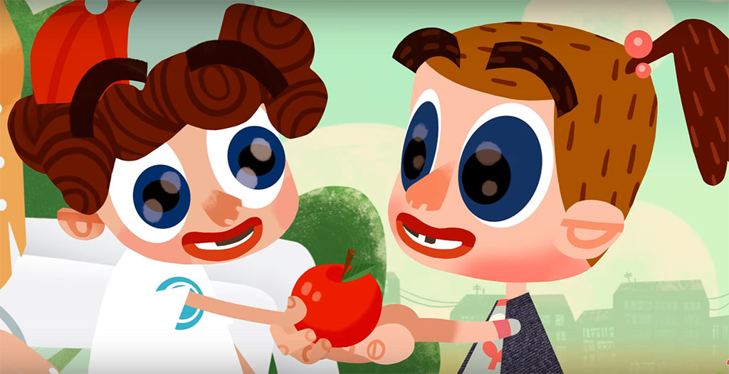 Начнём с работы анимационной студии «Паровоз» («Ми-ми-мишки», «Сказочный патруль» и многие другие любимые детьми мультики) в рамках проекта «Детям о важном». Девочка Мира на прогулке в парке знакомится с Димой — особым мальчиком, которого побаиваются другие детишки на площадке.