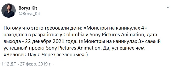 Премьеру назначили на 22 декабря 2021 года. Кажется, что это далеко, но на самом деле не успеем моргнуть, как будем покупать билеты в кино. Кстати, заявление об успешности третьей части серии немного удивительно, вам не кажется? Особенно с учётом всех наград, которые собрал «Человек-паук: Через вселенные». С другой стороны, им там виднее, и каждый мультфильм найдёт своих зрителей.