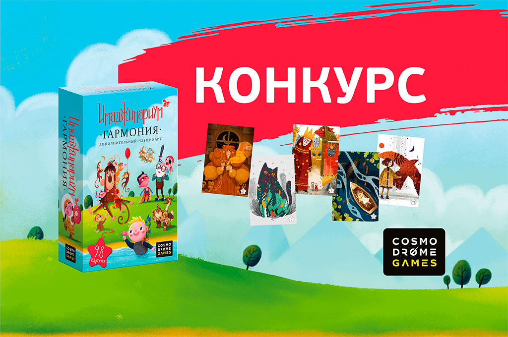 Издательство Cosmodrome Games проводит добрый и яркий конкурс, в котором можно выиграть любимую детьми и взрослыми настольную игру «Имаджинариум» и совершенно новое дополнение к ней «Гармония», которое состоит из 98 карточек с милыми иллюстрациями.