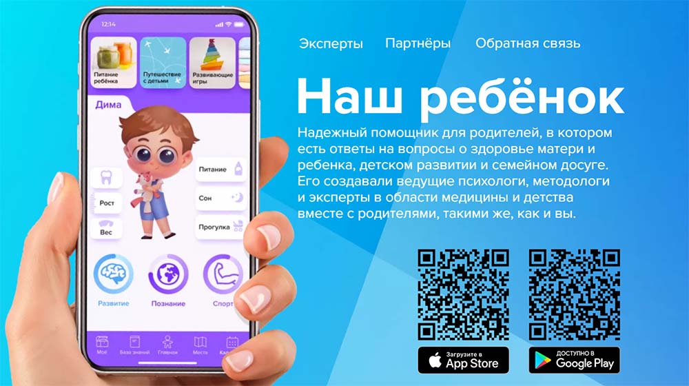 Скачивайте приложение «Наш ребёнок» в App Store, Google Play и посещайте официальный сайт приложения.