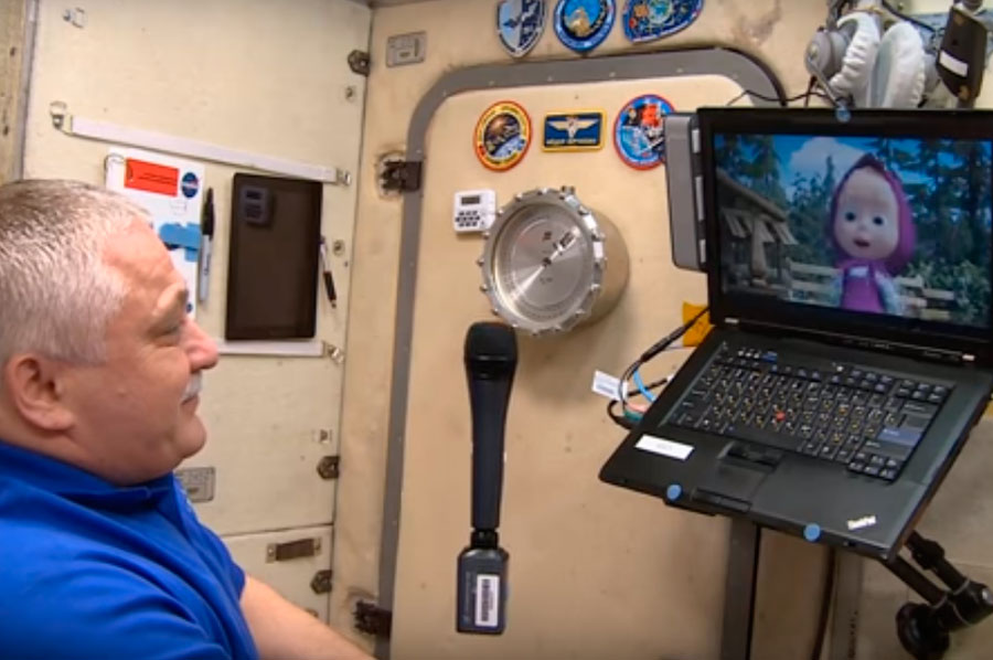 «Как вы знаете, космонавт это очень сложная, очень ответственная и опасная профессия. Мы в космос летаем не для того, чтобы развлекаться в невесомости и мультики смотреть. Но сегодня исключительный день», — с этими словами командир Международной космической станции Федор Юрчихин включает на специально закрепленном ноутбуке новую серию мультсериала «Маша и медведь», которую доставили на МКС несколько дней назад. Видео с космонавтом опубликовано на YouTube-канале Роскосмоса.