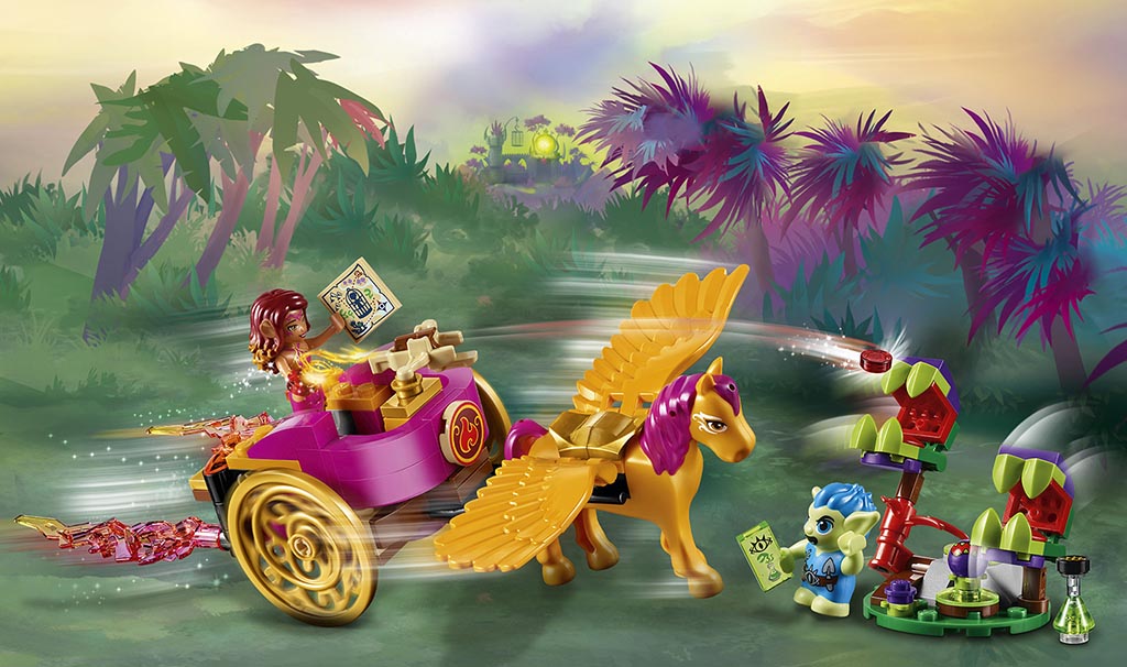 Кстати, гоблин есть и в этом наборе, и во всех последующих. Поскольку гоблины — основные враги главных героев, без них не обходится ни один из новых наборов. «Побег Азари из леса гоблинов» принесет игрокам и коллекционерам чудесную огненную колесницу с пегасом, плотоядное растение и саму великолепную эльфийку Азари, которая всегда находит выход из любой ситуации.