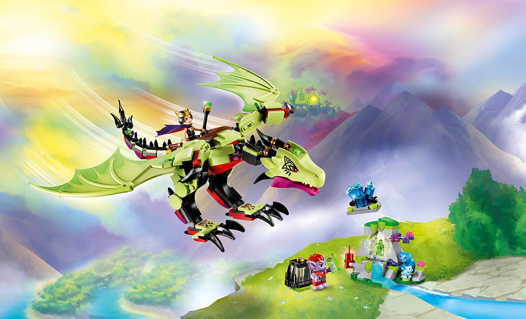 В этом наборе тоже есть большой дракон — Сапфир, без чьих особых способностей победить Короля Гоблинов вряд ли удастся. Также здесь вы найдете и саму хозяйку волшебной лечебницы, и маленького дракончика Лулу, которого хотят похитить злодеи, и в принципе все необходимое, чтобы придумать свою увлекательную историю в мире Эльфендейла.