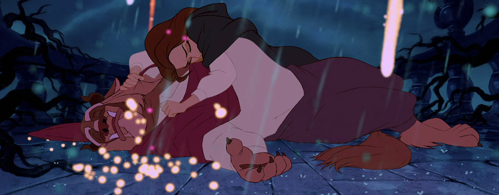 Гастон идёт в атаку и сам навлекает на себя гибель. Его неспособность измениться и дальнейшая смерть — альтернативная версия жизни принца. Ведь тот, если бы не попал под проклятие, мог бы закончить свои дни примерно на той же трагичной ноте. Трагичной и очень узколобой. Белль признаётся в любви не к внешности Чудовища, а к его внутреннему миру, и происходит превращение. Вот только оно уж произошло внутри героя.