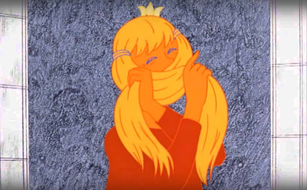 Вопрос третий: Принцесса бежит по воде или по траве? Сначала виднеются брызги, потом эта же зеленая субстанция ведет себя вполне твердо, как земля, например. Удивительная поверхность. Может, этот тот самый ковер-цветочная поляна?