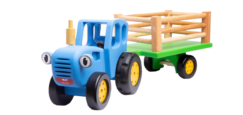 Конечно, этот трактор с прицепом, всё по канону, а значит, можно продолжать угадывать, кого именно он в нём везёт. С этим синим четырёхколёсным героем мультсериала обязательно получится весело провести время. Трактор тоже деревянный (как и вся наша подборка), но покрыт акриловыми красками. Благодаря яркому синему цвету ребёнок сможет развивать цветовое восприятие. Покатушки с Гошей помогут мелкой моторике, а сам он и его игрушечный вид поспособствуют развитию воображения.