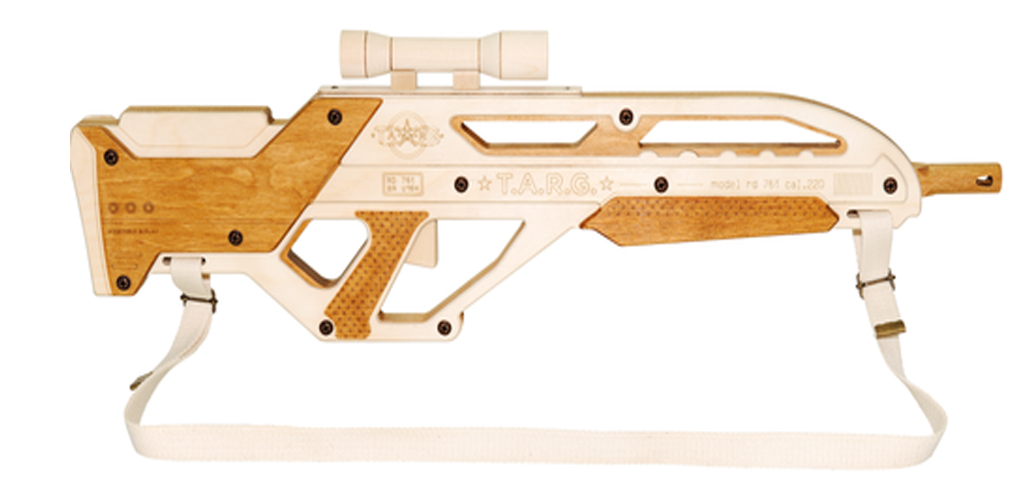 Такая «игрушка» подойдёт всем тем, кто любит, чтобы оружие было мощное и устрашающее. И, да, данную модель автомата перед игрой тоже нужно будет сначала собрать и склеить, но уделить этому, возможно, чуть больше времени, чем в случае с пистолетом. Но на большие игрушки и хочется тратить больше времени, даже если изначально они представляют из себя отдельные деревянные детали, с которыми в войнушку особенно и не поиграешь. В наборе есть всё необходимое: детали, клей, шурупы, ремень, резинки. Собирать такую игрушку можно под присмотром взрослого (и руководством в случае заминок) уже с 6 лет, а после 12 лет — самостоятельно. Не удивимся, если взрослые захотят и себе такую игрушку.