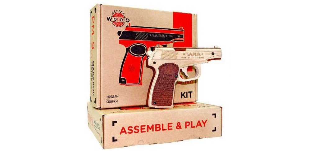 № 6: Сборная деревянная модель пистолет PM-9mm