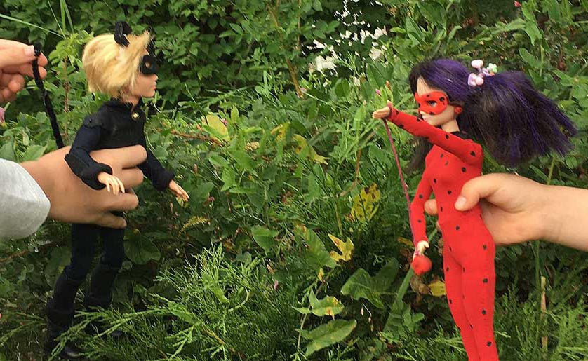 Например: кукольная семья, Владик командует куклой папой, его другом и мальчиком малышом. Кира отвечает за куклу маму, ее подружку и детей. На их дом совершено нападение… ну например драконов. Они творят беспредел в кукло-доме, куклы-парни под руководством сына доблестно отражают атаку, девочки ахают и готовят чай. Потом Кира командует, что пора пить чай, и нападение сходит на нет, а защитники пьют чай вместе с семьей.