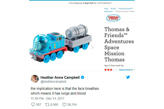 Да, жутко, знаем. А теперь пользователи снова решили обсудить анатомию Томаса, увидев в магазинах игрушку в скафандре. Все спорят, куда именно его надевать и как сделать так, чтобы паровозик в нем выжил.
