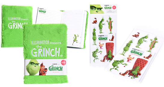А призы у него такие — шерстяные и пушистые зелёные блокноты и наклейки с самим Гринчем. Да, самолюбия у него не отнять! Но всё равно приятно!