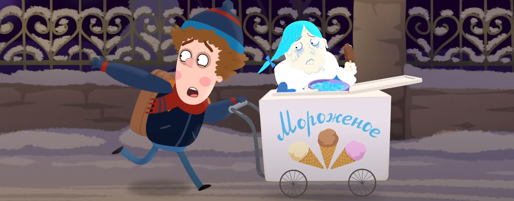 Петя, как мы поняли из концовки предыдущего эпизода, продолжает спасать Снегурочку. Девушка, если вы забыли, от расстройства и тревоги начала таять. А ведь она ледяная, и если так продолжится дальше, то от Снегурочки останется лужа. Бравый школьник показывает чудеса эрудиции и засовывает девушку… Куда? В морозильную тележку, там-то среди эскимо процесс таяния замедлится.