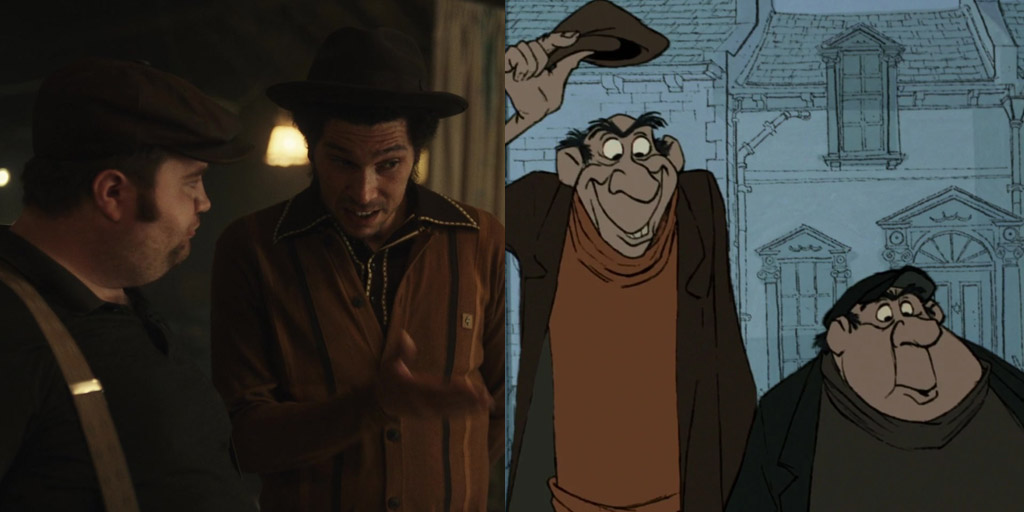 Пускай далматинцы тут скорее инструменты в руках злодейки, собаки в целом играют немаленькую роль в фильме. У Эстеллы и её напарников есть два очаровательных пса — они выступают в качестве воришек и опытных отвлекальщиков внимания.