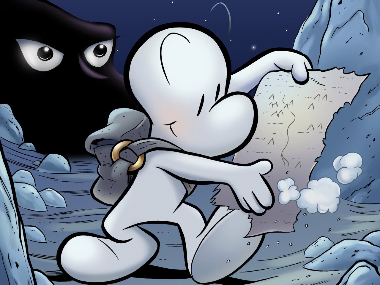 Напомним, «Боун» — серия комиксов (1991−2004) Джеффа Смита. Речь в них шла о трех братьях-боунах, очень похожих на муми-троллей. В силу некоторых обстоятельств эти милые лысые существа вынуждены были покинуть свой родной город. И оказавшись в странном неизвестном месте, с ними стали происходить невероятные истории, где засветились и гигантские крысоподобные твари, и крестьянская девушка Торн со своей бабушкой Бен, и много других персонажей.