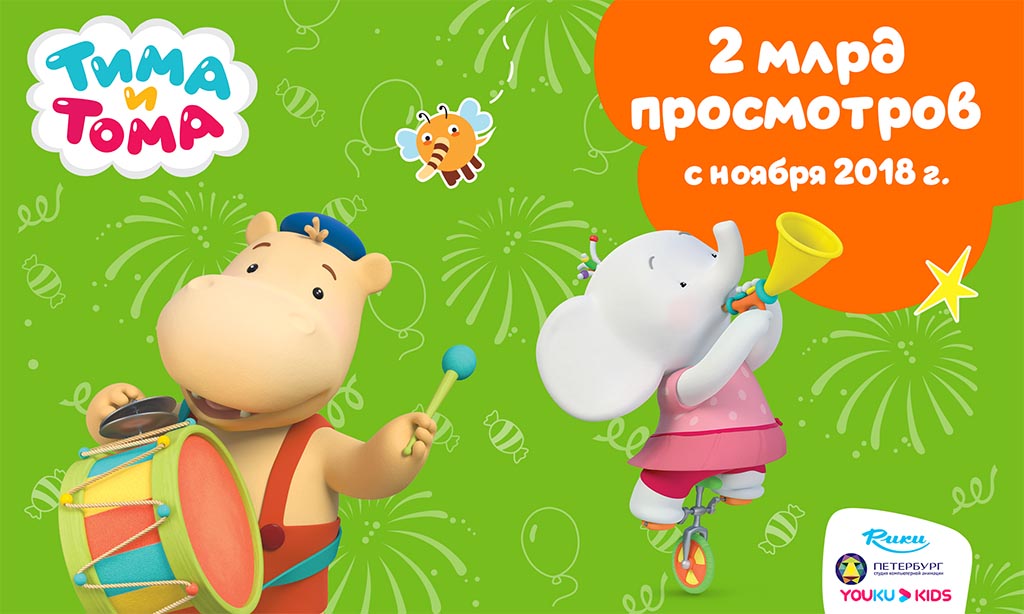 Отечественные герои мультсериала «Тима и Тома» — бегемотик и девочка-слонёнок — радуют своими победами. Детище Группы Компаний «Рики» смогло преодолеть отметку в 2 млрд просмотров на крупнейшем китайском видеохостинге YouKu.