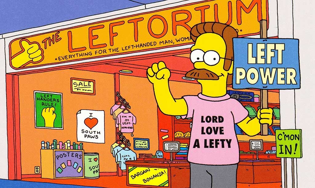 Мы тут про детские мультфильмы в основном, но куда же без вездесущих Симпсонов? В сериале представлен целый букет прекрасных левшей: и Барт Симпсон, и мистер Бёрнс, и Мардж (хотя она скорее амбидекстр — переучилась делать всё левой рукой и иногда забывает об этом), и, конечно, Нед Фландерс со своим горемычным магазином товаров для леворуких жителей Спрингфилда. Кстати, персонажи «Футурамы» сплошь левши. И создатель обоих этих сериалов, Мэтт Грейнинг, тоже левша.