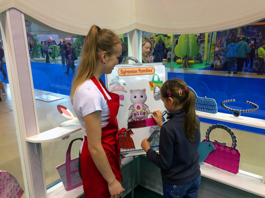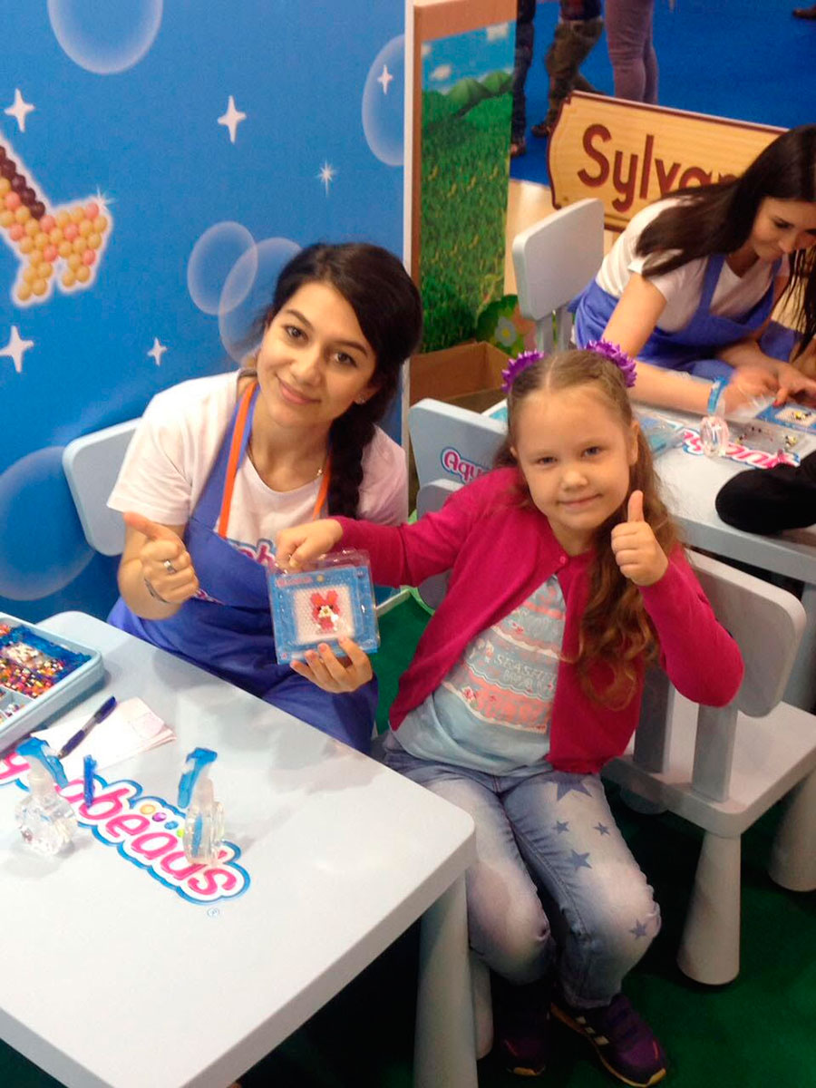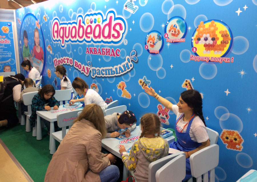 А буквально за углом домика Sylvanian Families находится стенд Aquabeads, где дети собирают игрушки из бусин.