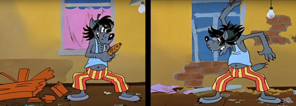 Возвращаясь к теме загадочных пропаж, перечислим самые заметные: несколько раз в разных эпизодах бесследно пропадают выброшенные Волком окурки, во второй серии исчезает светильник на стене между двумя зеркалами, в четвертой — скамейка во время демонстрационного урока по вольной борьбе, в девятой куда-то делись обломки сломанного стола, и так далее. На съемочной площадке «Ну, погоди!» мы подозреваем вора, потому что списывать все на небрежность мультипликаторов ужасно неинтересно.