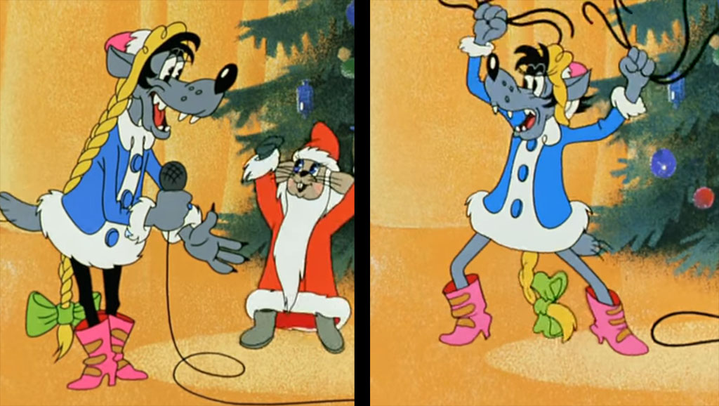 Самый известный и эпичный курьез — колготки, которые то появляются, то исчезают с Волка-Снегурочки во время исполнения песни в 8 эпизоде сериала. Процесс раздевания показан не был, куда делось белье, тоже неясно, и данный вопрос продолжает будоражить взрослых зрителей вот уже много лет.