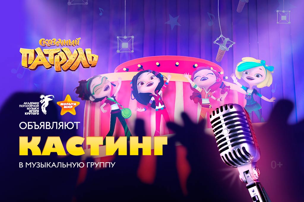 Впервые в России вымышленных мультгероев превратят в настоящий музыкальный коллектив! Анимационная выставка-фестиваль детских развлечений «Мультимир» и Академия популярной музыки Игоря Крутого предлагают девочкам 10−14 лет стать частью большого вокально-танцевального проекта «Сказочный патруль». Группа будет создана на основе образов из популярного одноименного мультсериала. И да, кастинг уже стартовал!