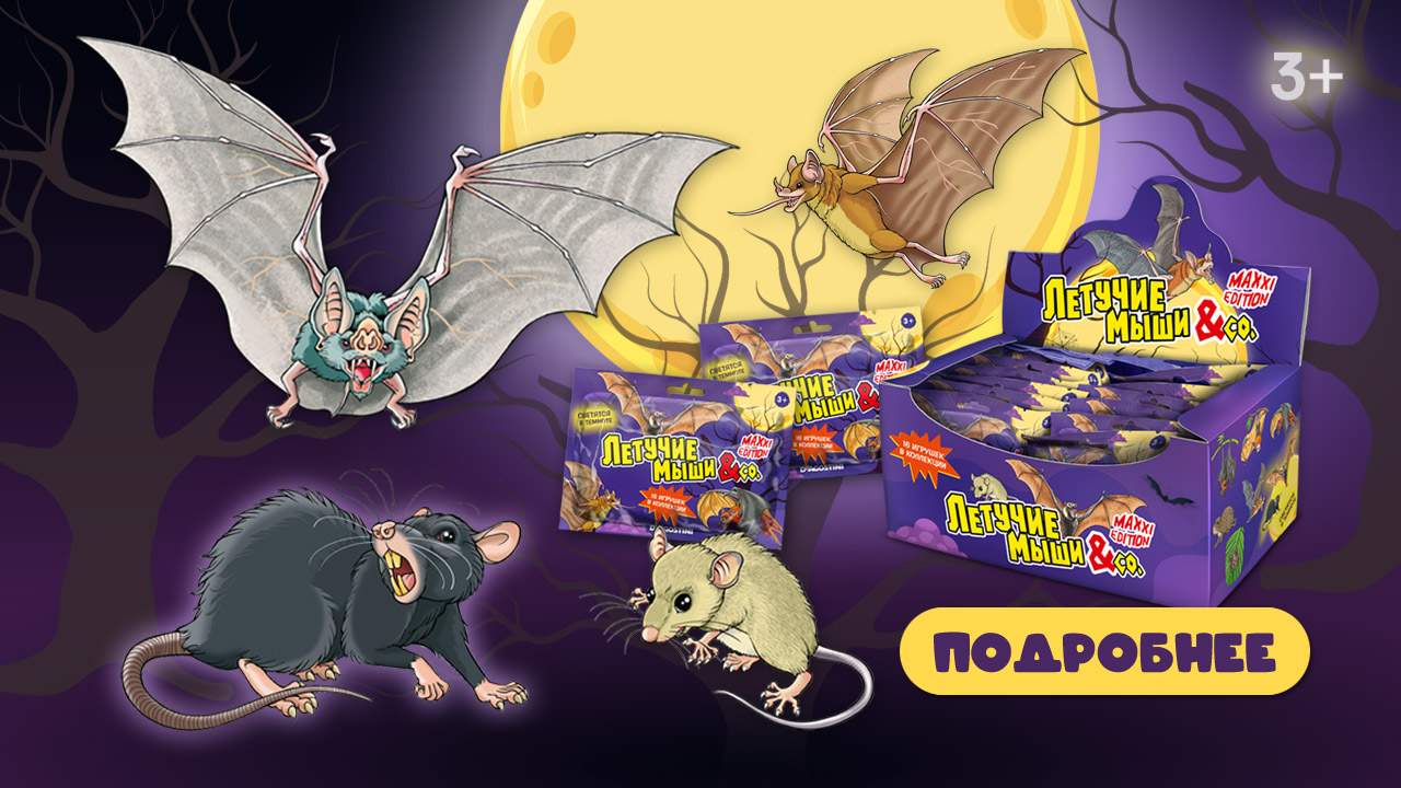 Такие разные и классные — коллекция состоит из 16 персонажей, крылатых и не очень. Вампиры, крысы, летучие лисицы, а ещё они супертягучие, некоторые светятся в темноте и с лёгкостью станут героями любых детских приключений дома или на улице.