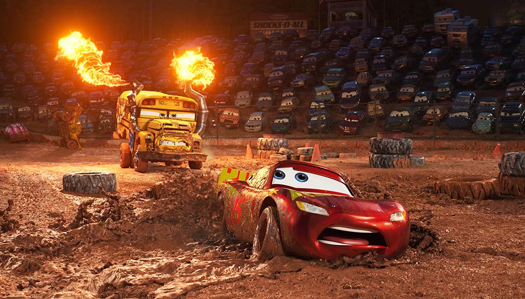 Однако, при сохранении характерного для «Тачек» настроя на однозначный позитив третья часть умудряется одновременно быть мрачнее и серьезнее. Здесь, конечно, стоит вспомнить трагичную аварию — ту самую, из трейлера, просмотр которого вызывал у малышей приступы истерики.