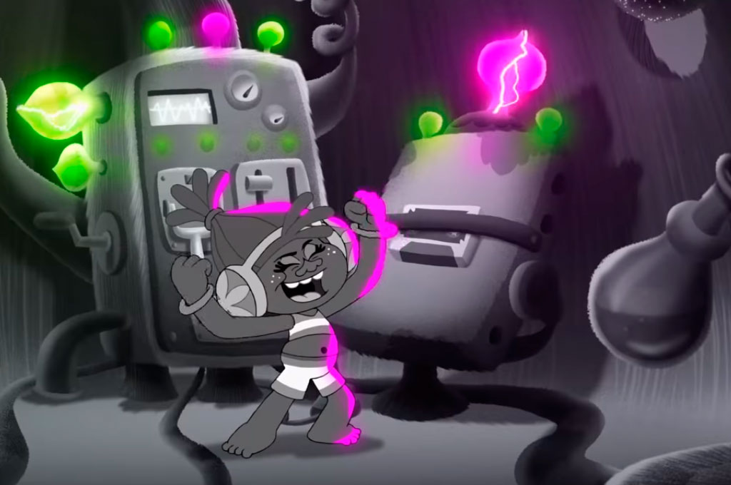 В Сети появился ролик из пятого сезона мультсериала «Тролли», основанного на одноимённом мультфильме. В нём DJ Звуки создаёт своего «монстра Франкенштейна», а точнее — самую привязчивую и навязчивую мелодию на земле. Звучит она классно, бодро и очень нравится троллям, пока эта песня не начинает преследовать их, даже если приёмник выключен.
