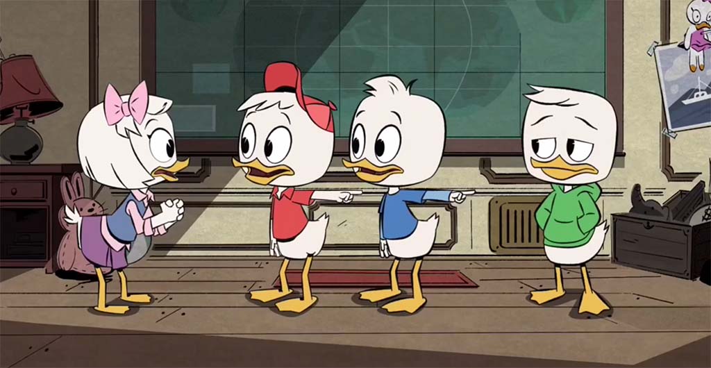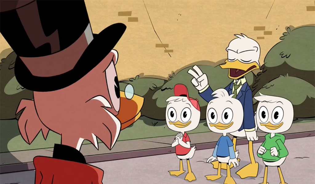 А как же племянники? Те самые Билли, Вилли и Дилли, которые на самом деле Хьюи, Дьюи и Луи, но в нашем переводе почему-то с одним именем на двоих (Билл и Уилл — это все Уильям). Так вот. Если в старых «Утиных историях» они отличались в основном цветом своих рубашечек и бейсболок, то здесь персонажи действительно имеют разные характеры. Все. Какие — не будем спойлерить, но даже к концу первой серии вы уже точно сможете из различать.