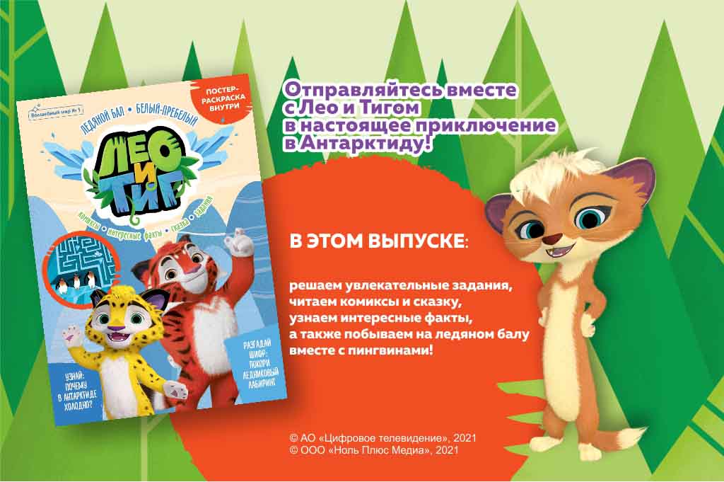 В новом выпуске журнала «Волшебный мир» о приключениях неугомонных друзей из тайги, Лео и Тиг отправляются далеко за пределы своего дома — в Антарктиду. Там их ждут действующий вулкан и северное сияние. А вместе с новыми друзьями-пингвинами Лео и Тиг попадут на ледяной бал.