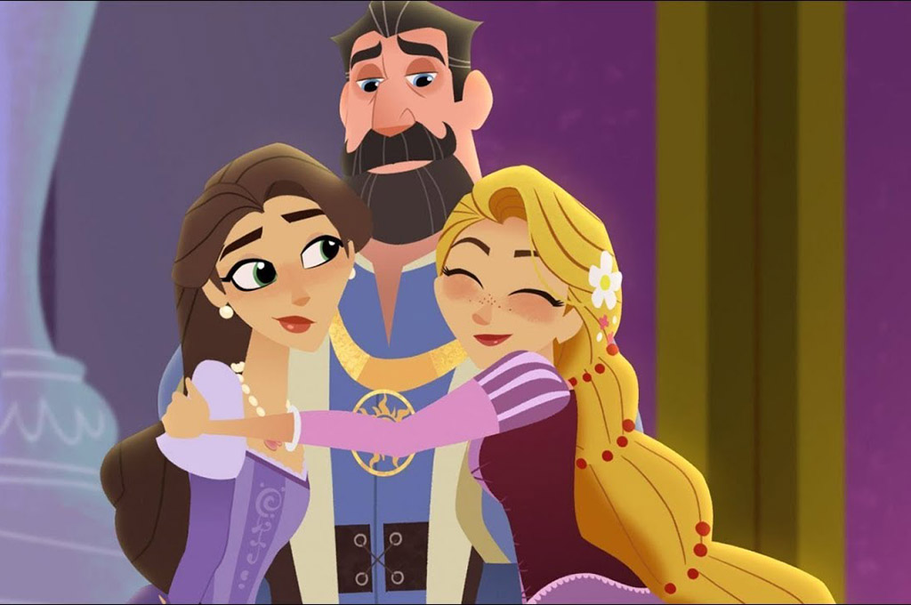 Родители Рапунцель, однажды потеряв и вновь обретя дочь, иногда перегибают с опекой, но всё равно остаются мудрыми и заботливыми мамой и папой. Отличный пример тому — эпизод, когда им пришлось уехать из государства, а Рапунцель стала заменять правителя. Они доверяют своей дочери и преподают ей важные уроки, необходимые как в жизни, так и при управлении страной.