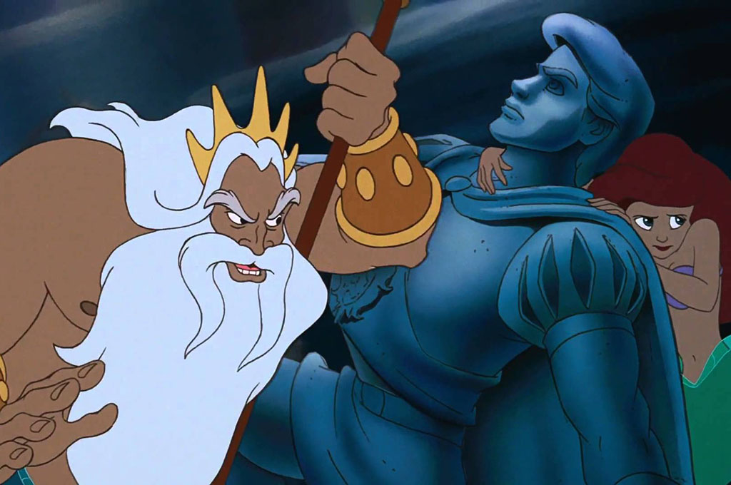 Очередной пример гиперопеки во благо. Узнав, что Ариэль, возможно, побывала на суше вопреки его указам, или даже влюбилась в человека, её отец ворвался в её секретный грот и уничтожил драгоценную коллекцию людских предметов. Это был необдуманный поступок, вызванный гневом, который мог бы привести к ещё худшим последствиям, если бы не храбрость Ариэль и её друзей.