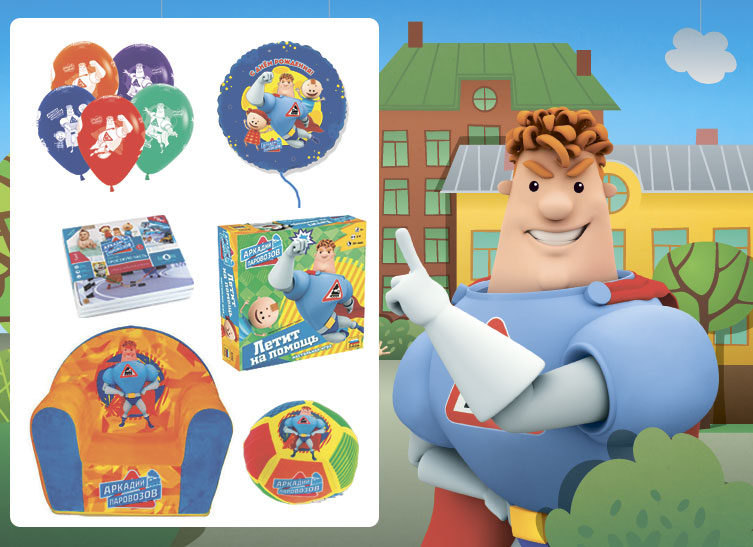 А для тех, кому для дружбы недостаточно посмотреть, надо потрогать — существуют товары с Аркадием Паровозовым. Тут и воздушные шары, и замечательные водонепроницаемые пазлы, настольная игра, мяч- антистресс и даже кресло с изображением любимого героя. Выбирайте, что больше по душе! А в конце апреля на прилавках магазинов появятся шоколадки.