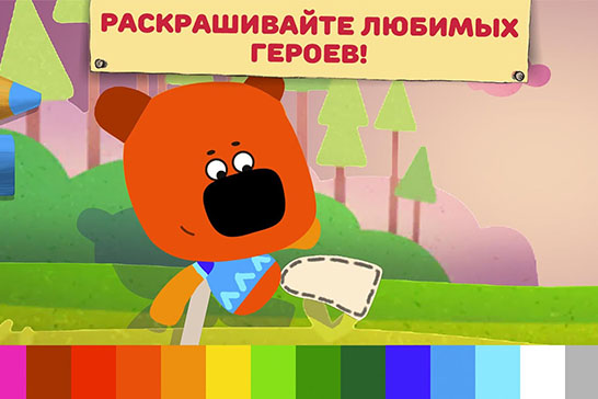 В «Рисовании» детям можно будет раскрасить один из четырех сюжетов и посмотреть интерактивную историю. Или создать что-то совершенно свое, комбинируя разные кисти и цвета. Час или два тишины вам точно обеспечены!