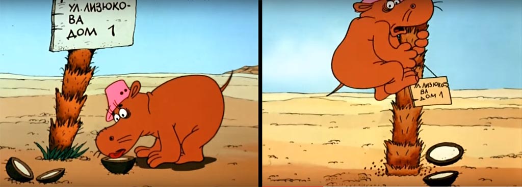 Мультфильм Вячеслава Котеночкина рассказывает про другого путешественника в жаркие края — котенка, примерившего на себя шкуру бегемота и познавшего все трудности жизни в африканской глуши. Это вам не Воронеж! Кстати, в самом Воронеже на улице Лизюкова стоит памятник этому храброму котику. Очень заслуженный, на наш взгляд.