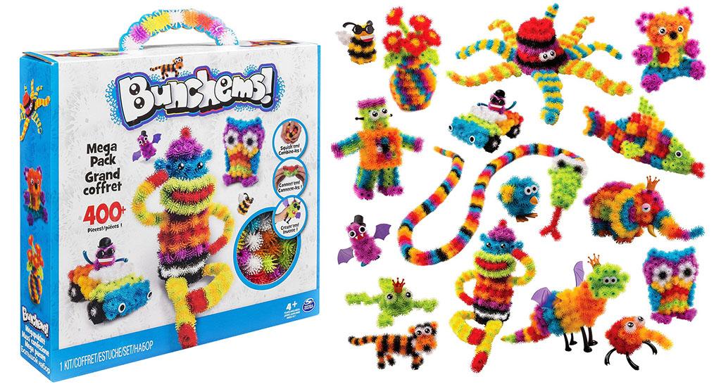Не имеющий аналогов яркий конструктор Bunchems (произносится «Банчемс») из мягких деталей, цепляющихся друг за друга при помощи колючек-крючков. Это тот самый случай, когда новая игрушка родилась из отличной идеи — а именно из детских игр, когда друг в друга бросаются цветками репейника. Вот только эти цветки имеют неприятное свойство путаться в волосах и создавать колтуны, а детали конструктора Bunchems достать из прически очень легко и просто. И, разумеется, они предоставляют немалый простор для полета конструкторской мысли юных творцов.