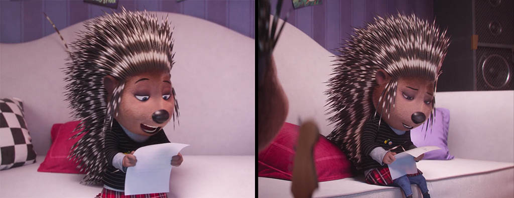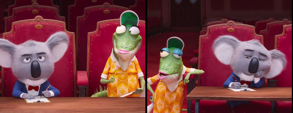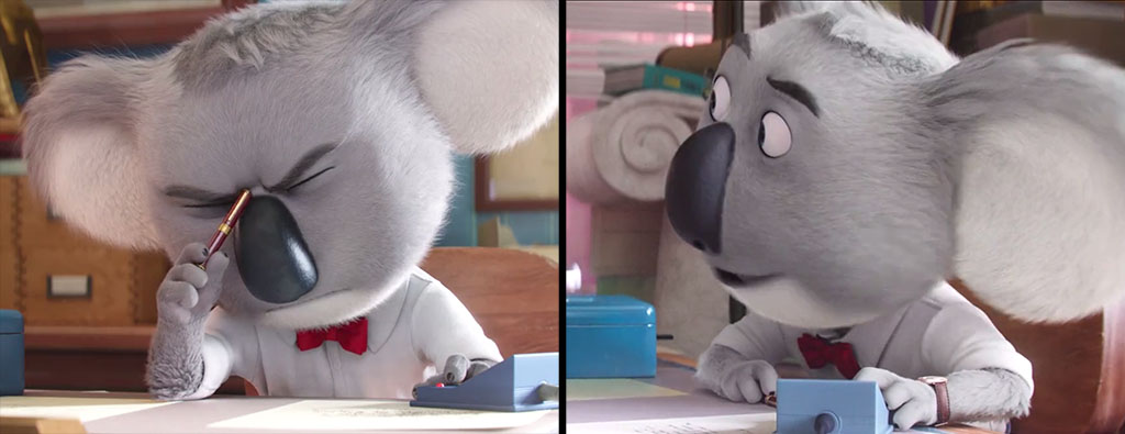 В завершение — ряд самых вкусных и каверзных вопросов к мультфильму в целом. Бастер Мун — левша, правша или амбидестр? Скорее всего третье, как и Король из Бременских музыкантов — даже во время прослушивания коала держит ручку в левой, а позже — в правой руке, успешно ведя записи обеими. Талант!
