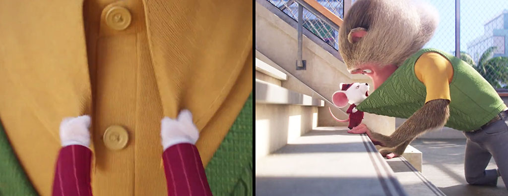 С внезапными перемещениями чего-либо в считаные кадры дело обстоит гораздо богаче. Вот ловкие лапки наглого Майка хватают бабуина за воротник, а держат уже за свитер. «А если найду»?!
