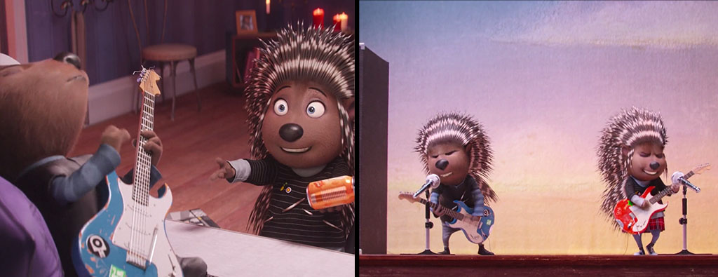 И изюминка вечера — излюбленный ценителями ляп с гитарой Лэнса в целом. Первый скриншот здесь — единственное место во всем «Зверопое», где гитара обычная, левосторонняя и держится за гриф левой рукой. Во всех остальных моментах у Лэнса правосторонняя гитара. Но это точно один и тот же инструмент, как считаете?